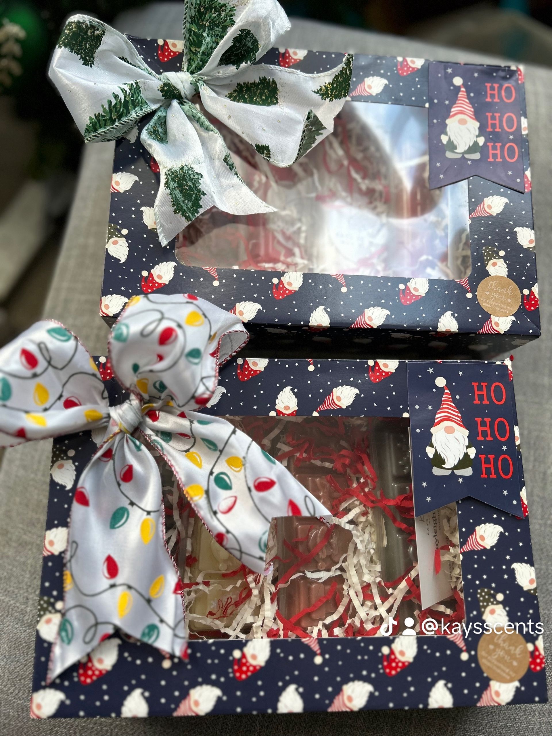 Christmas: trees, stars, presents, candy canes, Santa faces, stockings, snowman, ginger bread man, Christmas gnome